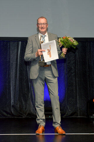 Stephan Bannierink, Leiter Beschaffungslogistik von Jüke Systemtechnik, konnte sich über die Auszeichnung mit dem Großen Preis des Mittelstandes freuen. Fotos: © Susanne Kurz | Oskar-Patzelt-Stiftung