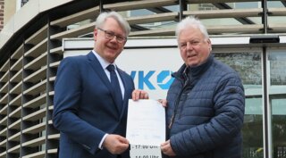 Rainer Ahlers vereidigt: Thomas Banasiewicz (links), Hauptgeschäftsführer der Handwerkskammer Münster, hat Kraftfahrzeugmechanikermeister Rainer Ahlers aus Münster (rechts) zum Sachverständigen für das Kraftfahrzeugtechnikerhandwerk öffentlich bestellt und vereidigt. Die künftige Tätigkeit des Handwerksunternehmers im Sachverständigenwesen ist vielseitig: Neben der fachlichen Beratung nimmt das Schiedswesen breiten Raum ein. Bei Gutachten sind Sachverständige unparteiische und kompetente Partner für Gerichte, Versicherungen, aber auch Verbraucher. Sie sind verpflichtet, sich regelmäßig fachlich fortzubilden, um stets auf dem neusten Kenntnisstand ihres Berufs zu sein.