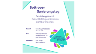 Die Sanierungsmesse findet im Rahmen des Projekts bottrop.gemeinsam.zirkulär statt, gefördert durch das Land Nordrhein-Westfalen und die Europäische Union. Ziel ist es, zirkuläres Bauen und nachhaltige Sanierung für die Stadtgesellschaft erlebbar zu machen.