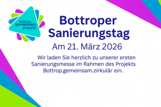 Am 21. März 2026 lädt das Projekt Bottrop.gemeinsam.zirkulär zur ersten Sanierungsmesse in Bottrop ein. Von 10:00 bis 14:00 Uhr haben Bürgerinnen und Bürger die Gelegenheit, sich umfassend über Möglichkeiten der Sanierung und Modernisierung von Bestandsimmobilien zu informieren und direkt mit regionalen Fachbetrieben ins Gespräch zu kommen.