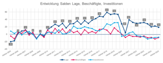Nur 21 Prozent der Betriebe haben in den vergangenen Monaten mehr Investitionen getätigt, 30 Prozent weniger. Für das kommende Halbjahr planen 35 Prozent geringere Investitionen, 15 Prozent mehr.